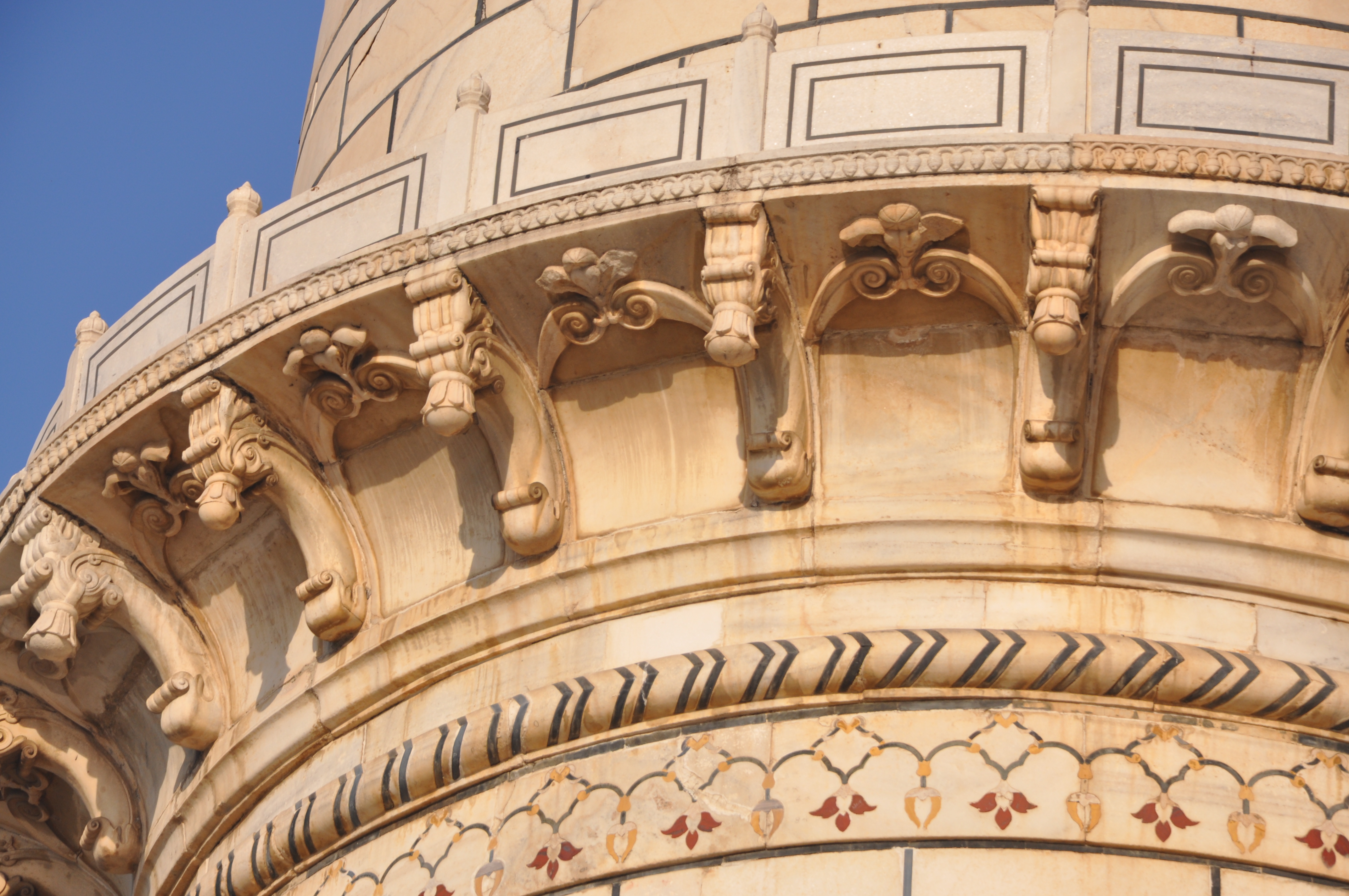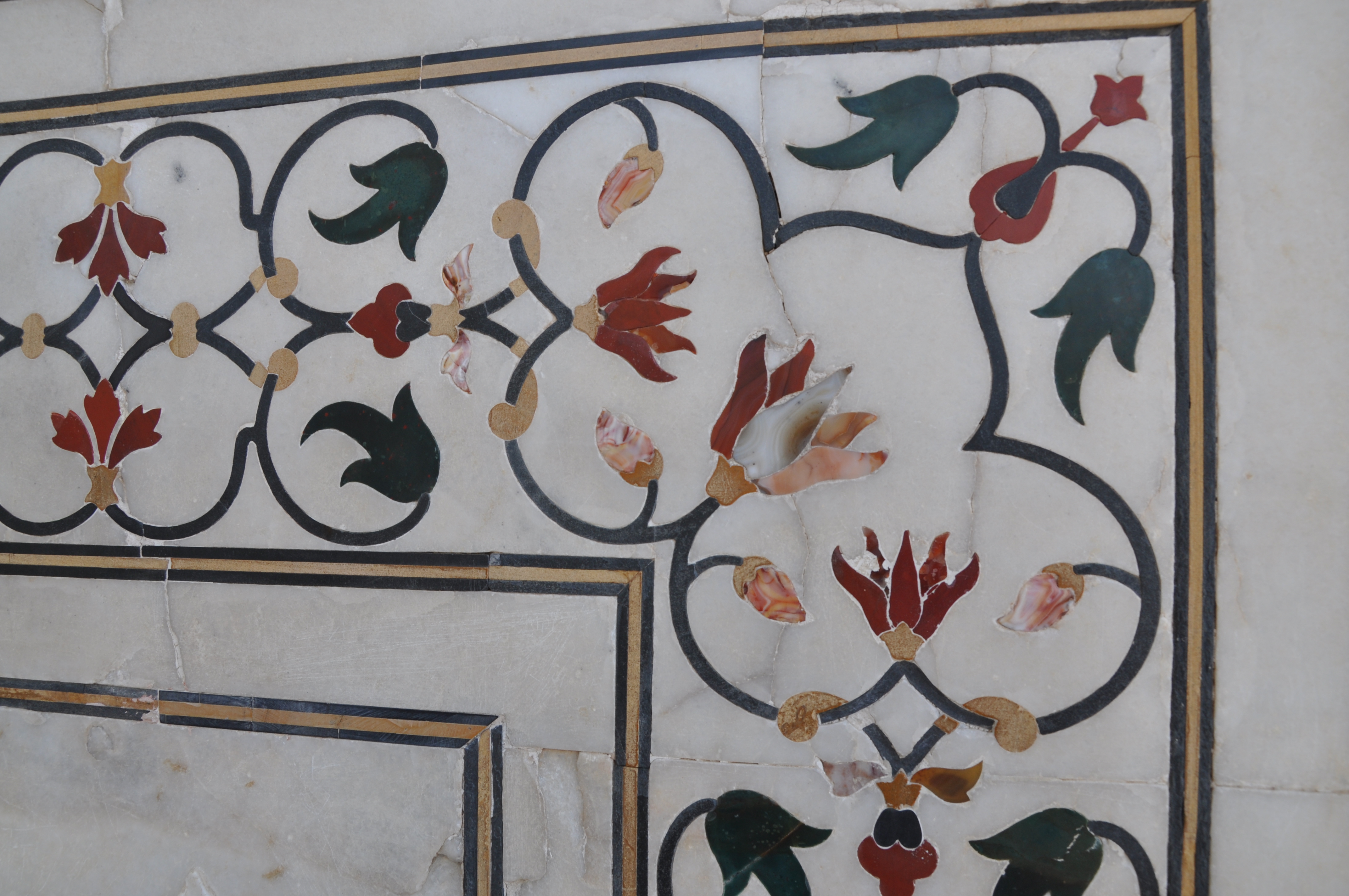 Next up – Agra Fort at sunset – an incredible Mughal fortress with views of the Taj Mahal. The palace and grounds were impressive. Especially the symmetrical gardens, stone lattice carvings, running water and fountains. Agra Fort and the Taj Mahal are difficult to describe in words. Even before my close encounter with the Taj Mahal it was obvious why my India-Coach insisted that I visit other cities first. Paint and brick are beautiful, but they’re black and white movies to the 3-D Digital Color created by flourescent marble inlays and gemstones that decorate the Taj Mahal. I was off to my hotel and then a predawn tour at the Taj Mahal the next morning.